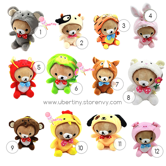Rilakkuma wears a kawaii animal suit featuring the following characters of the Yearly Zodiac: