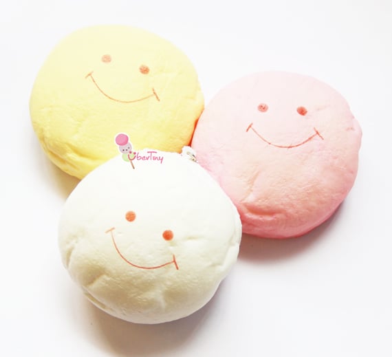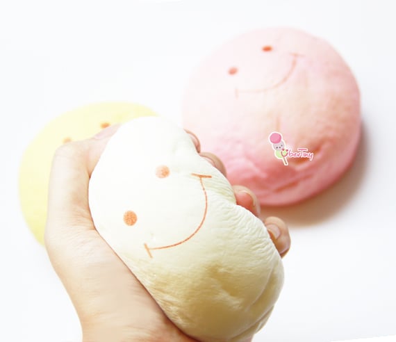 Super Squishy Jumbo Marshmallow Bun (smiley faces) are available in Pink, Yellow and White!