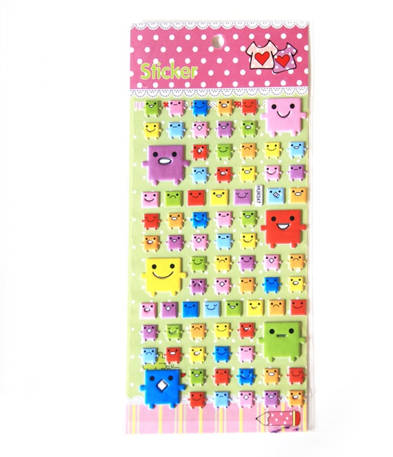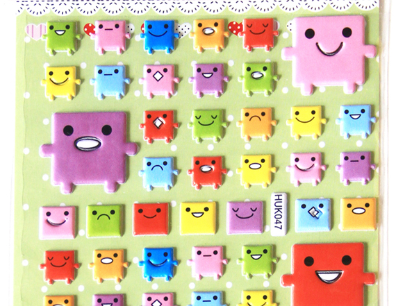 Cube Emoticon Monsters - Embossed kawaii Squishy Stickers (LARGE)