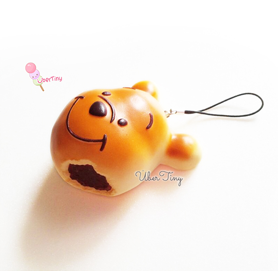 Someone has taken a bite from this adorable Pooh bitten bun squishy, and chocolate filling is peeking out from its side! Textured, squishy and of high quality ^^
