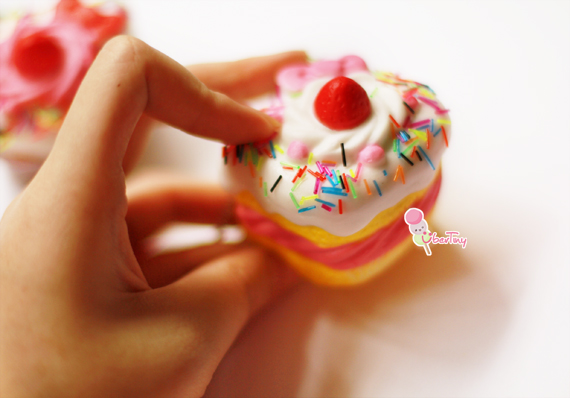 Hello kitty Shortcake squishy! Lightly scented, comes with ballchain.