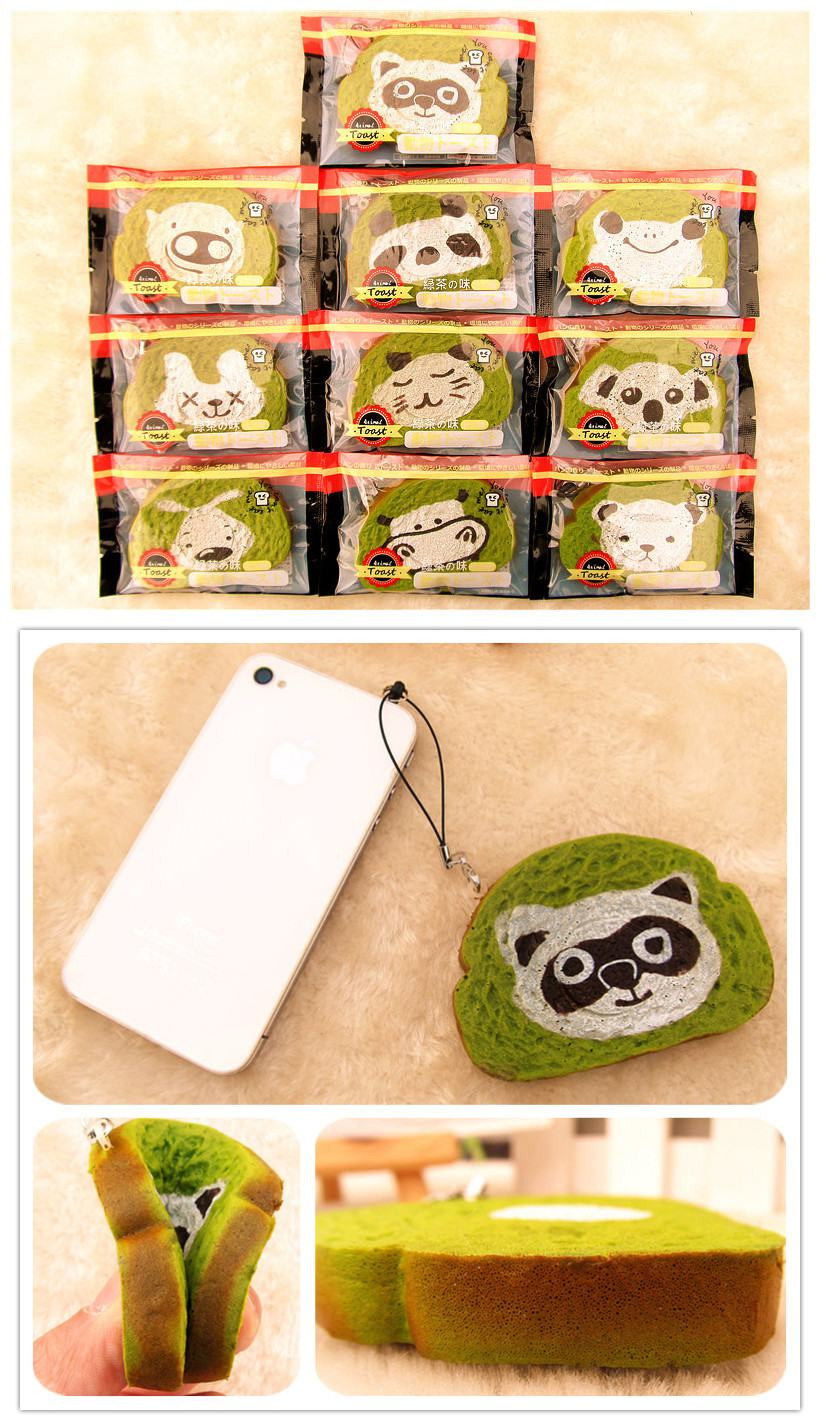 These Green Tea swiss rolls come with adorable animals on them, and a dust plug to attach to your phone with.