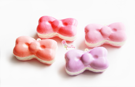 ❥ Approx. length: 7cm Bow-shaped macaron squishies are petite with cream details!